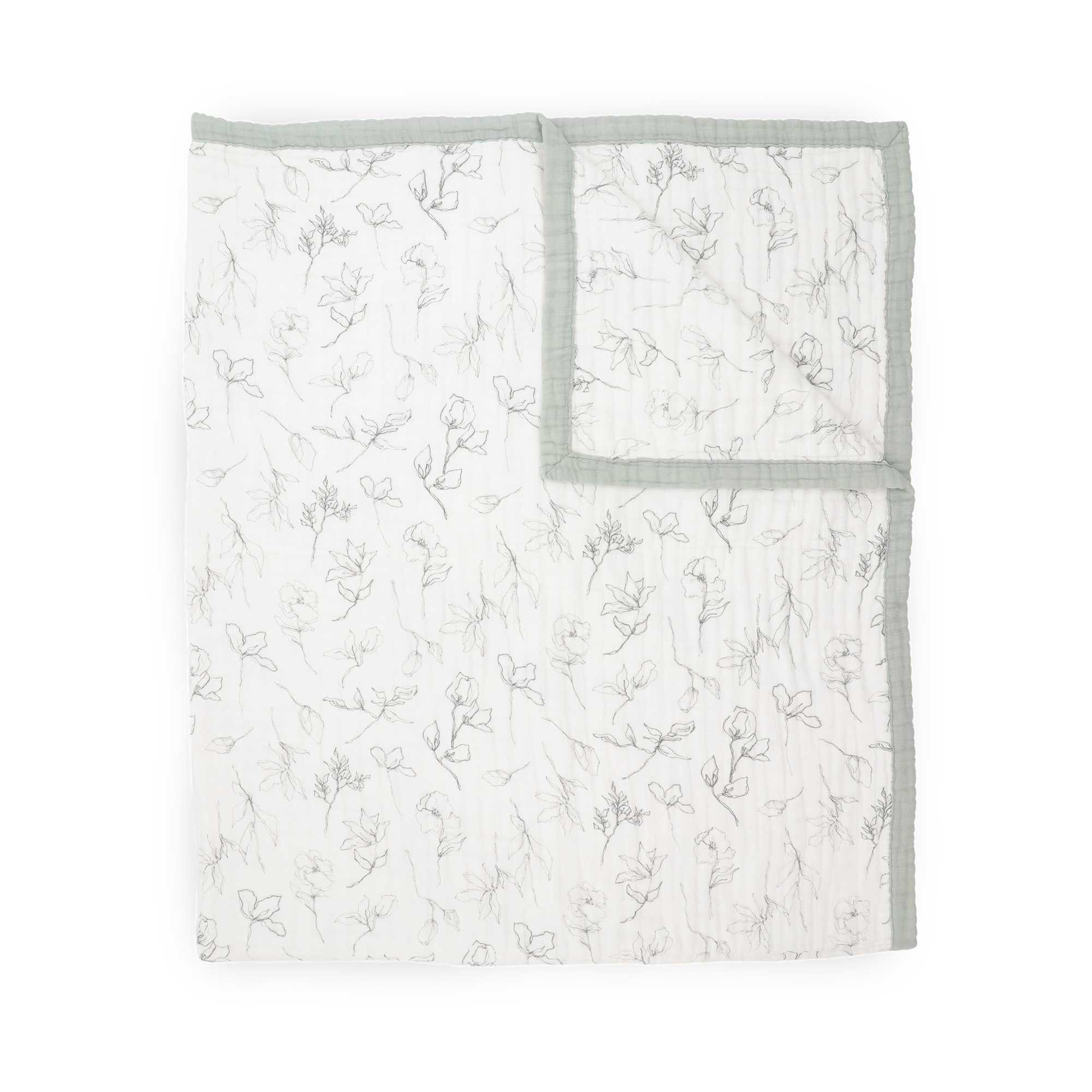 Organic Cotton Muslin Quilted Throw - Pencil Floral