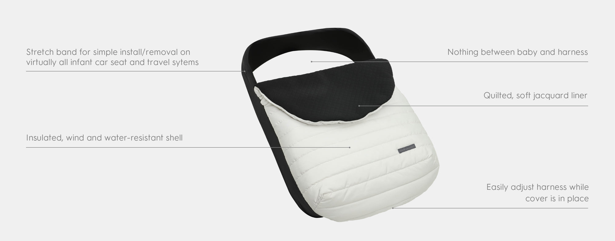 Designed for ease and versatility, the Winter Car Seat Cover is compatible with virtually every infant car seat and all-in-one travel system.
